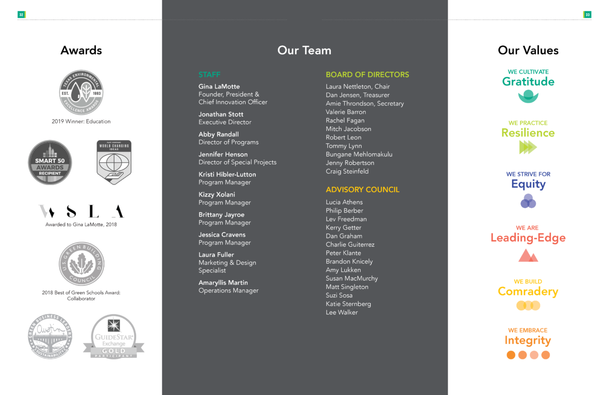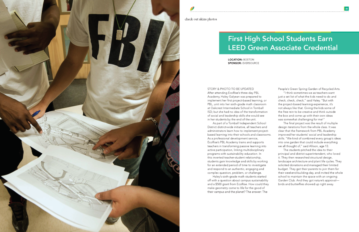 We also launched our new workforce development program and we are proud to be the first program globally that supports high school students in earning a USGBC LEED® Green Associate™ credential. Take a look at page 23 for a story on this award-winning program.
